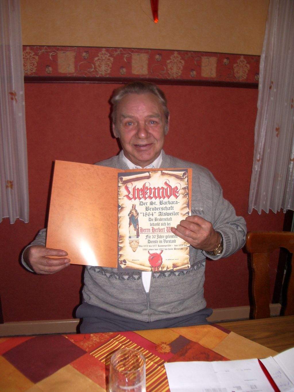 Der Bestand der Sterbekasse - 472 Mitglieder - sei gesichert, berichtetet Hauptkassierer Berthold Eckert. Albert Rauber blickte auf 27 Jahre als Vorsitzender zurück und sagte es sei an der Zeit einem neuen Mann Platz zu machen Er wisse die Bruderschaft für die Zukunft gut aufgestellt und mit engagierten Männern besetzt, so dass ihm für die Zukunft nicht bange sei. Nach den Wahlen wurden die Termine für 2007 angesprochen und Herbert Wilhelm für 30 Jahre und Berthold Eckert für 44 Jahre Mitarbeit im Vorstand geehrt.