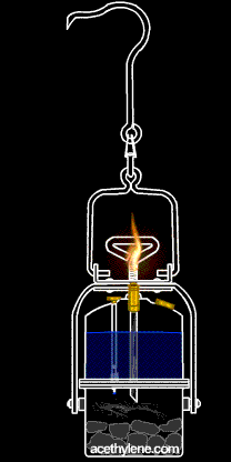 Acetylen erreicht bei der Verbrennung mit gewöhnlicher Luft, so wie es bei der Grubenlampe der Fall ist, eine überaus stark leuchtende Flamme mit einer Temperatur von annähernd 2000 Grad Celsius. Bei der Verbrennung mit reinem Sauerstoff (z. B. im Schweißbetrieb) werden sogar Temperaturen von über 3000 Grad Celsius erzielt. Die Karbidlampe stellt also gewissermaßen ein Gaswerk im kleinen dar.